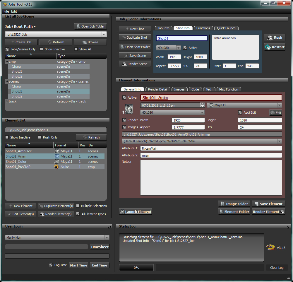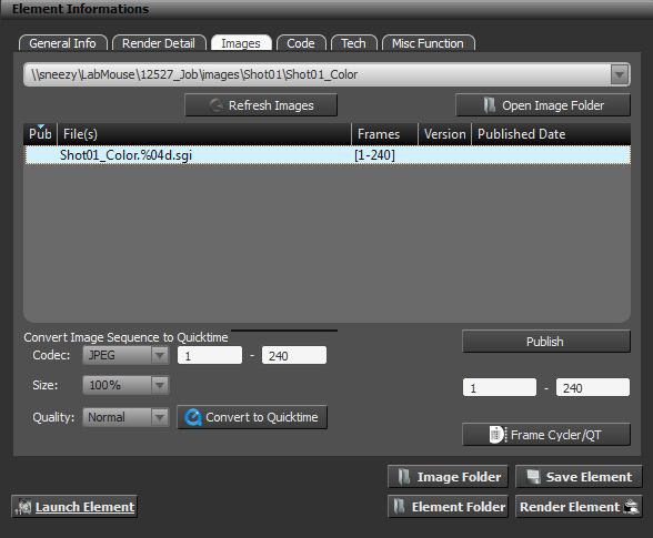 -- Save job/shot/element information (frames, resolution, notes... etc)